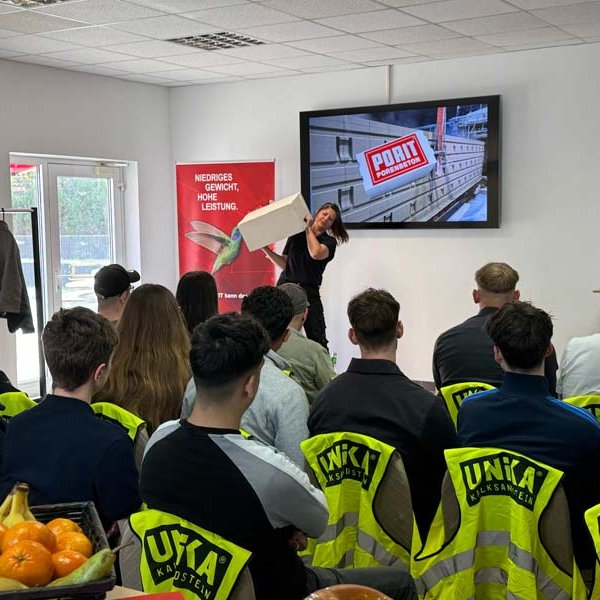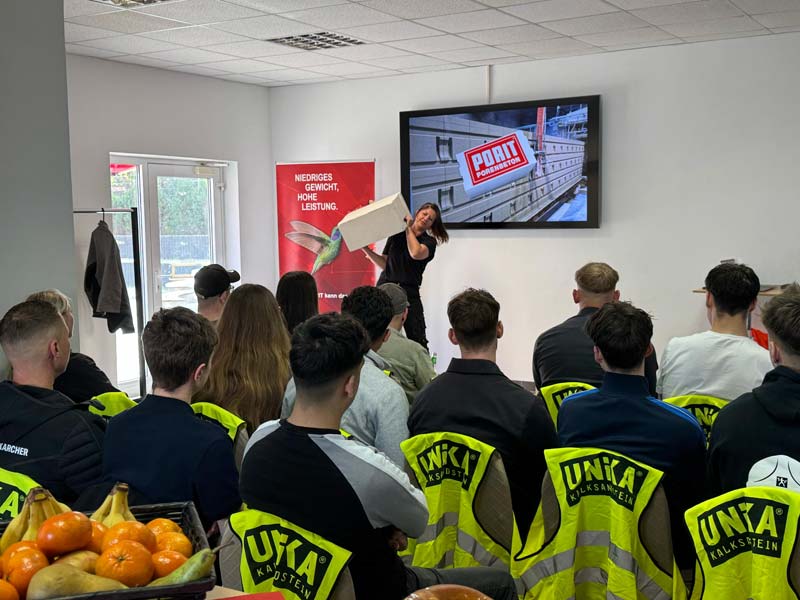 Im Rahmen des Azubitages haben wir unsere Produktion vorgestellt, einen Einblick in die Herstellung und Eigenschaften unserer UNIKA Kalksandsteine und PORIT Porenbetonsteine gegeben und unser innovatives Planelementsystem präsentiert – ein vorkonfektioniertes XL-Mauerwerk.